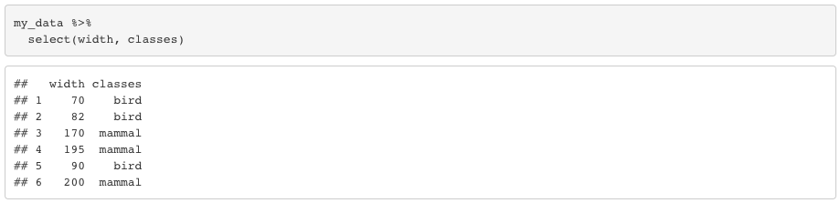 Select is pretty basic, it just displays the columns you would like to select. Let’s say you only want to see width and classes columns.