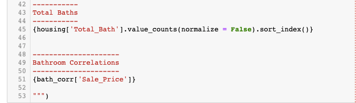 After creating log transformed new features, it’s a great practice to check correlations to see if what you have done is useful. Besides that, realize how I specify the package name as “np.” before using the log function. Make sure you import the packages you would like to use before in the script (better practice to import them in the chunk of code that you import your dataset.